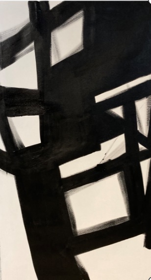 acrylic on canvas 60 x 44 in. Inspired by the "Wind Combs" sculptures by Chillida installed along the breakers in San Sebastion |