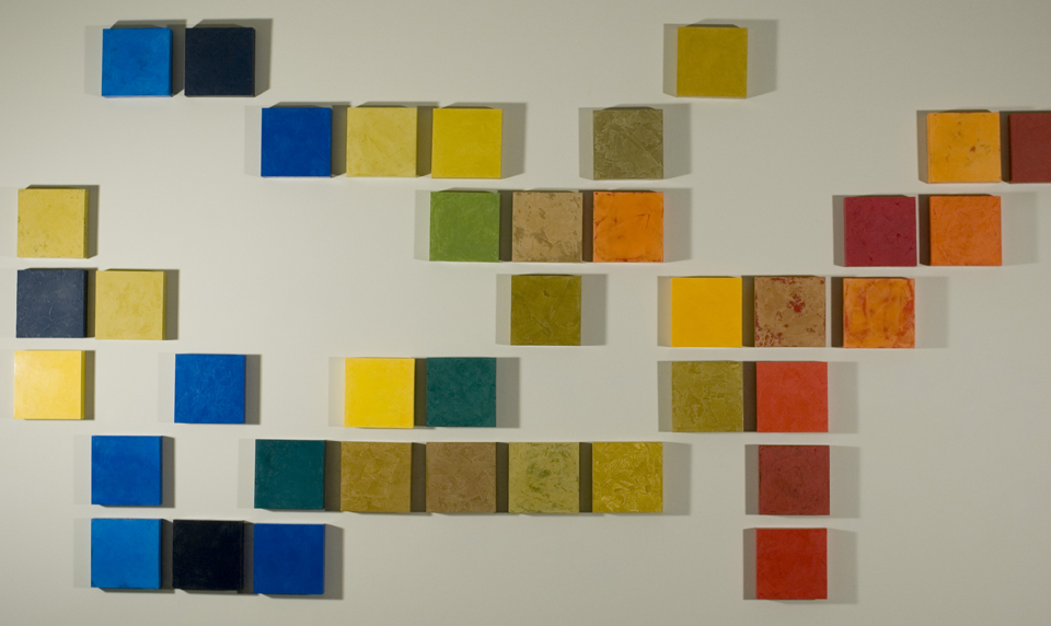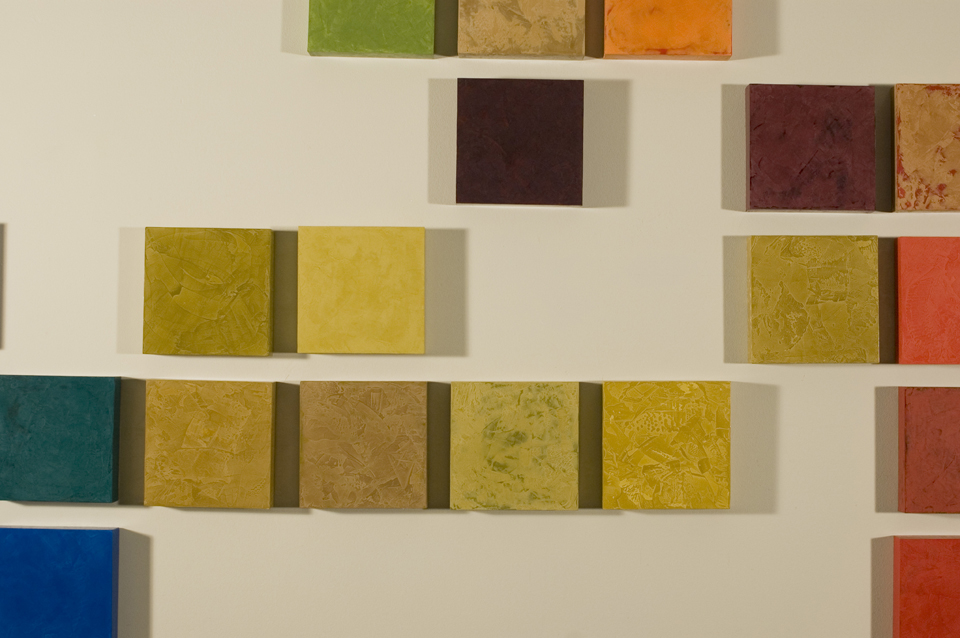 These panels, covered with plaster, pigment, and wax, are like bricks of pure color; each one conjuring different emotions and triggering memories.